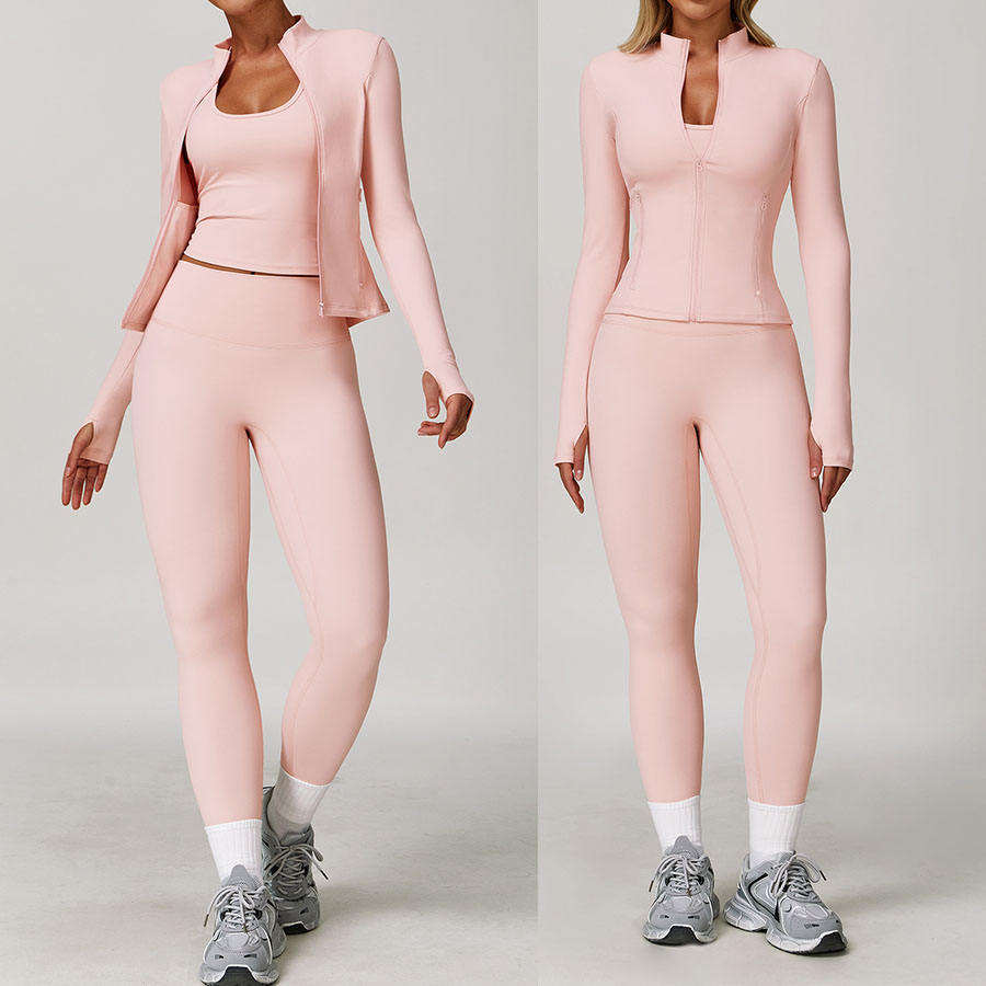 Womens 3 Piece Yoga Gym Set Sports Bra Shorts Leggings With Crop Jacket Fitness Activewear Outfit