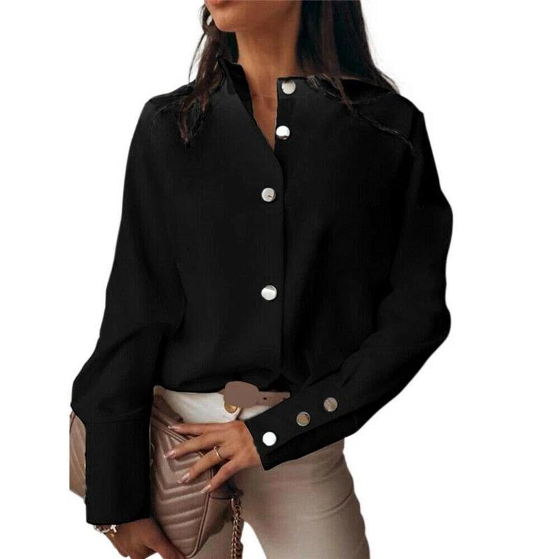 Women Tops Long Sleeve Down Loose Ladies Casual Work Button Blouse T Shirt Casual Solid Premium Quality RRI-TS-38