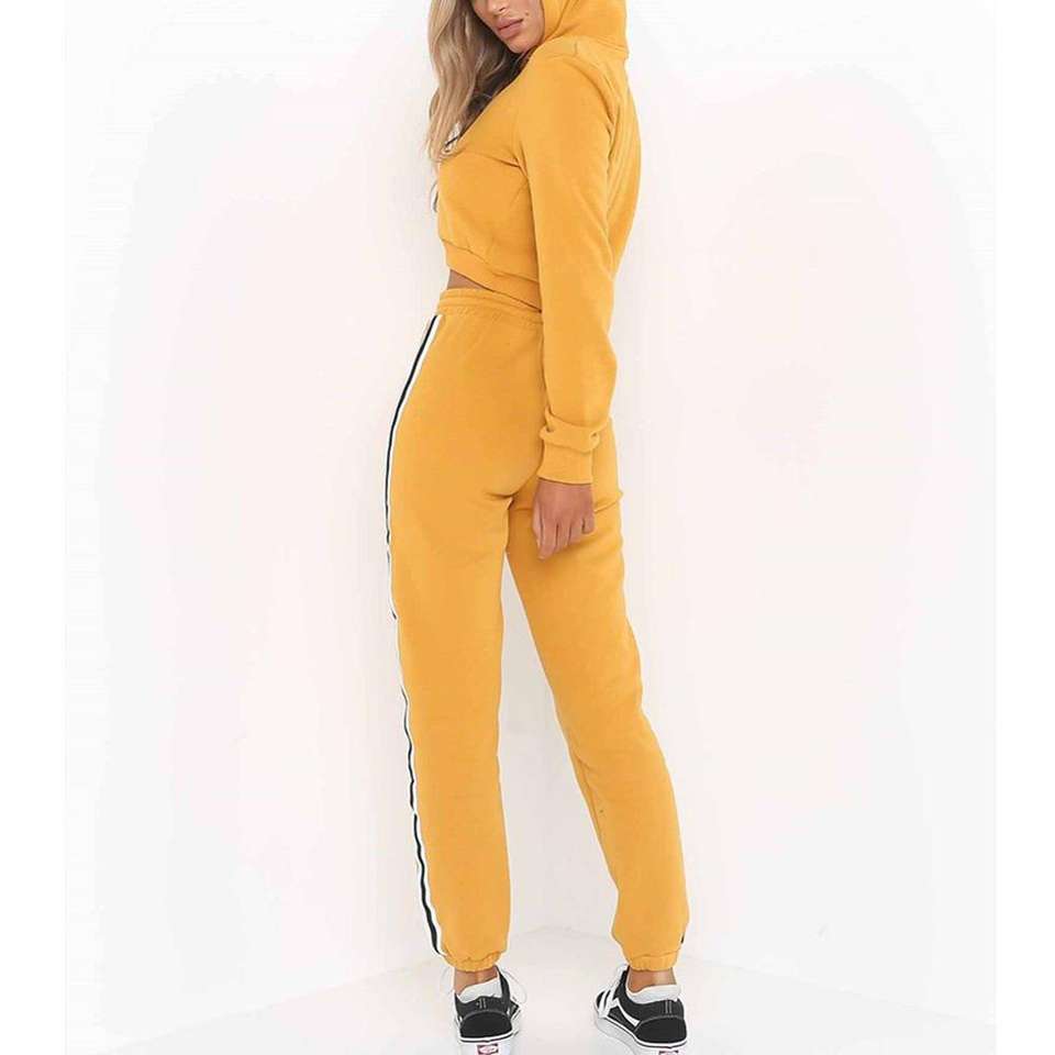 Women Tracksuit Set Long Sleeve Hooded Crop Top Sweatshirt + Pants Sport Jogging Suit Outfits