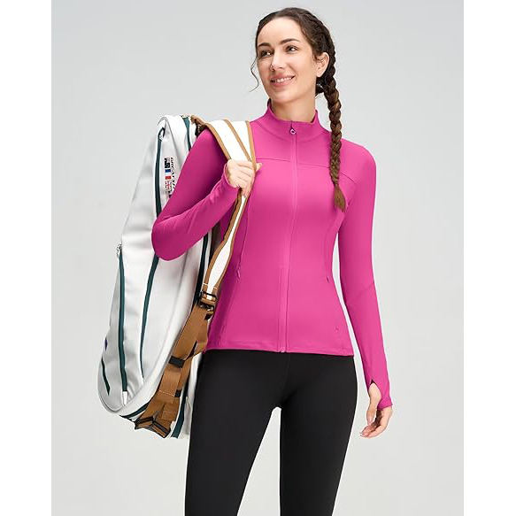 Women Training Jacket Full Zip Lightweight Top Stretchy Yoga Athletic Wear Soft Comfort Nylon Spandex Blend