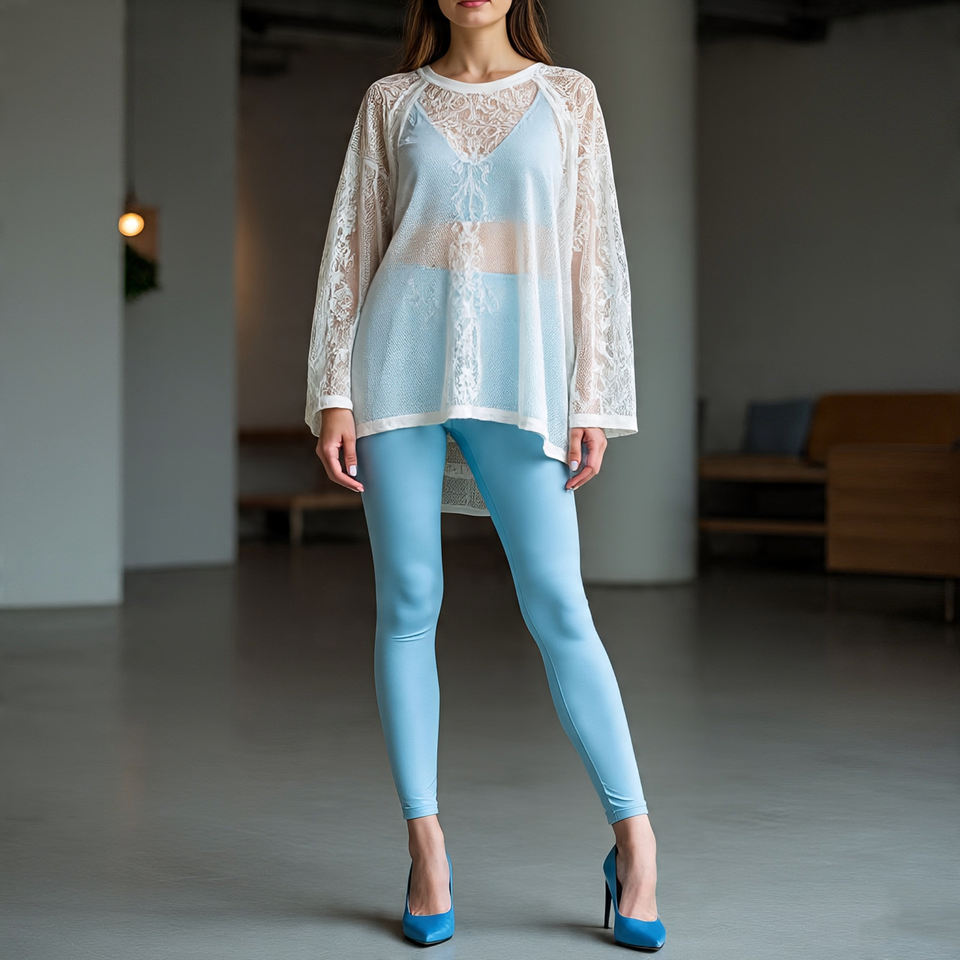 Women Transparent Crop Tops Two Piece Sets Workout Sexy Crop Shirts & Leggings Sets Women Sheer Mesh Two Piece Sets