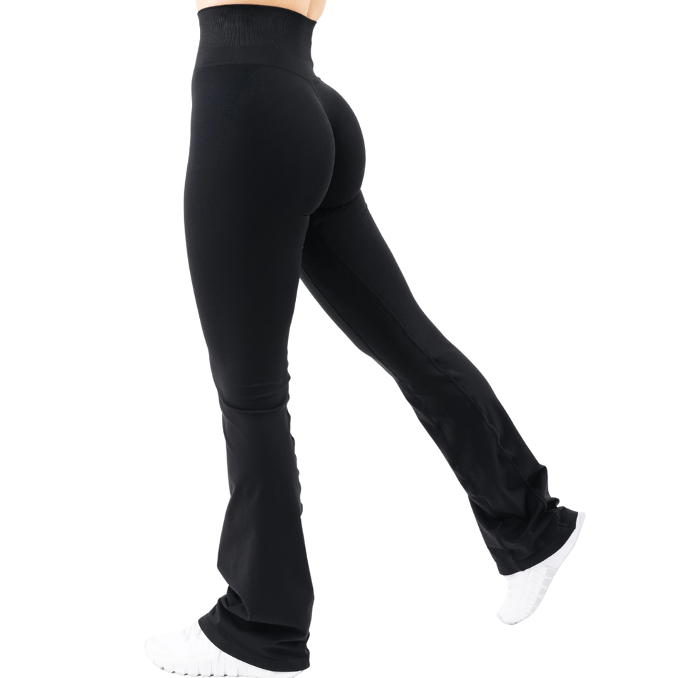 Women Ultra High Rise Flared Seamless Leggings Black Stretch Yoga Workout Gym Fitness Tummy Control Activewear Pro Fit Comfort