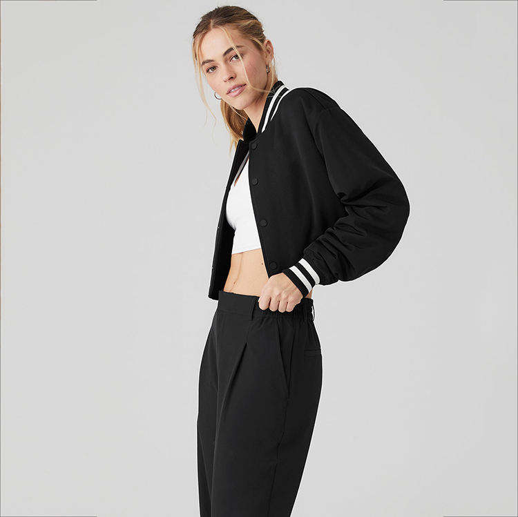 Women Varsity Jacket High Quality Custom Gym Cropped Button Running Made With Comfortable Fabric with Leather Sleeve