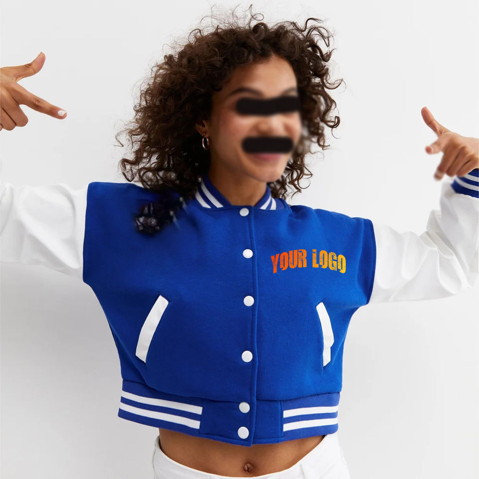 Women Varsity Letterman Jackets Crop Top Baseball College Varsity Jacket Genuine Wool Cropped Breathable Women Jackets