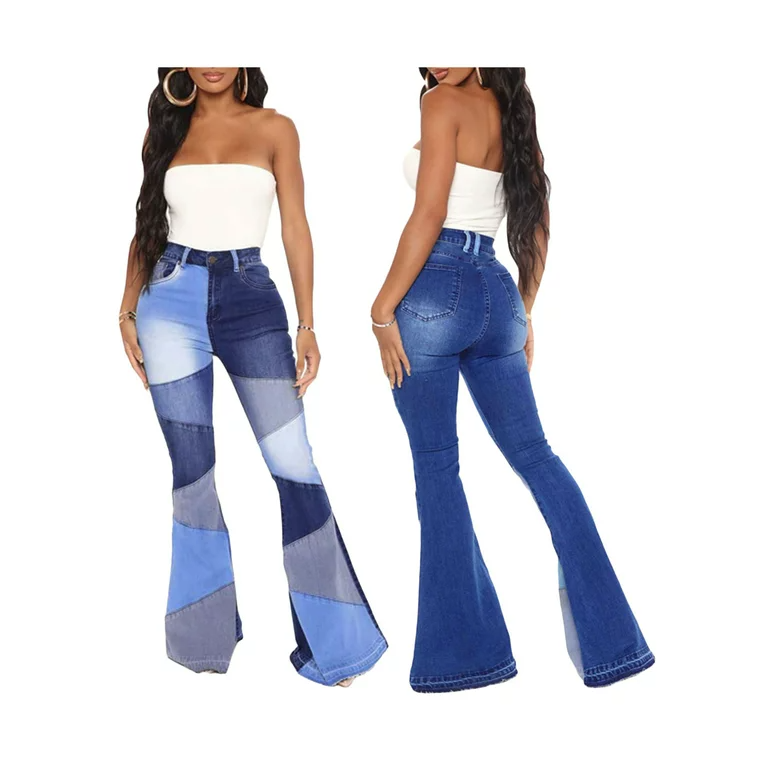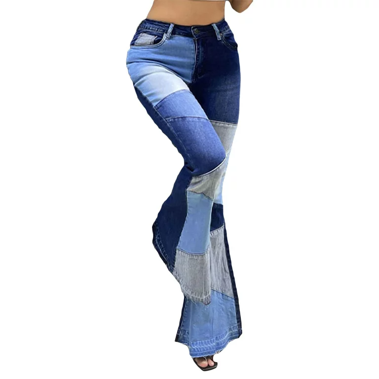 Women Vintage Patchwork Flare Jeans High Waist Denim Pants Autumn Winter Casual Streetwear flare jeans for Womens