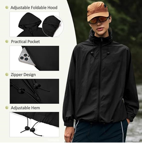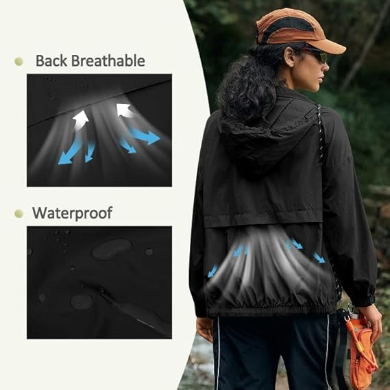 Women Waterproof Rain Jackets Lightweight Zip Up Raincoat Outdoor Hiking Hooded Windbreaker with Pocket