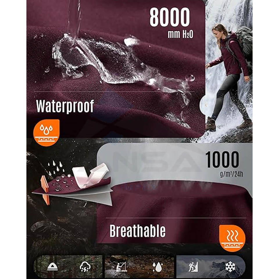 Women Waterproof Windbreaker Softshell Jacket Lightweight Fleece Lined Warm Outdoor Jacket with Removable Hood Plum
