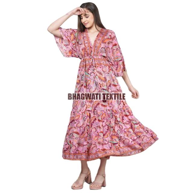 Women Wear Clothing Bohemian Art Silk Dresses for Girls Beachwear Floral Silk Dress Women Clothing Party Wear Dress