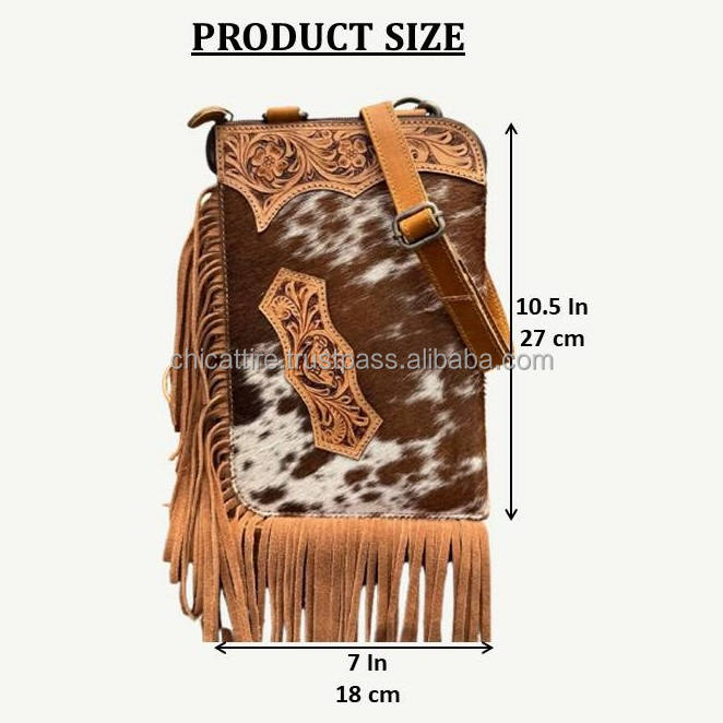 Product name:Hand Tooled Fringe Cowhide Leather Crossbody Messenger Bag