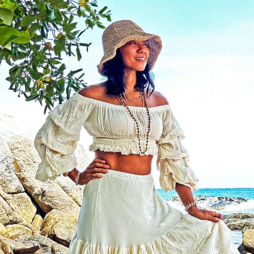 Women White Boho Co Ord Set Off Shoulder Crop Top Layered Maxi Skirt Summer Beachwear Two Piece Set