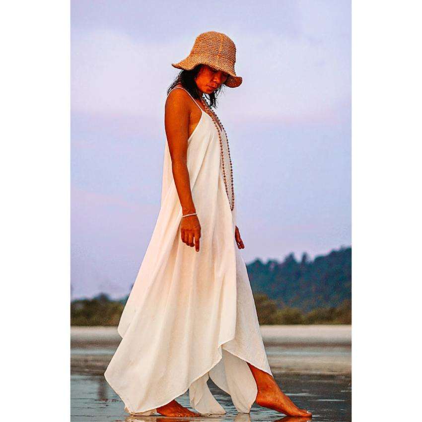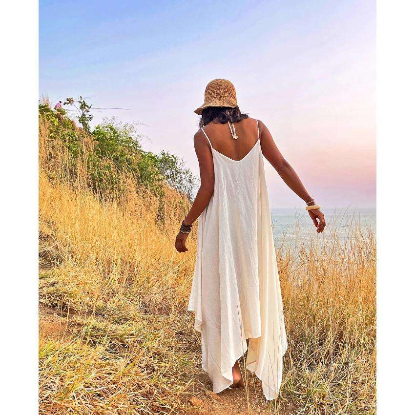 Women White Boho Maxi Dress Sleeveless Asymmetrical Lace Panel Long Dress Summer Beach Resort Wear