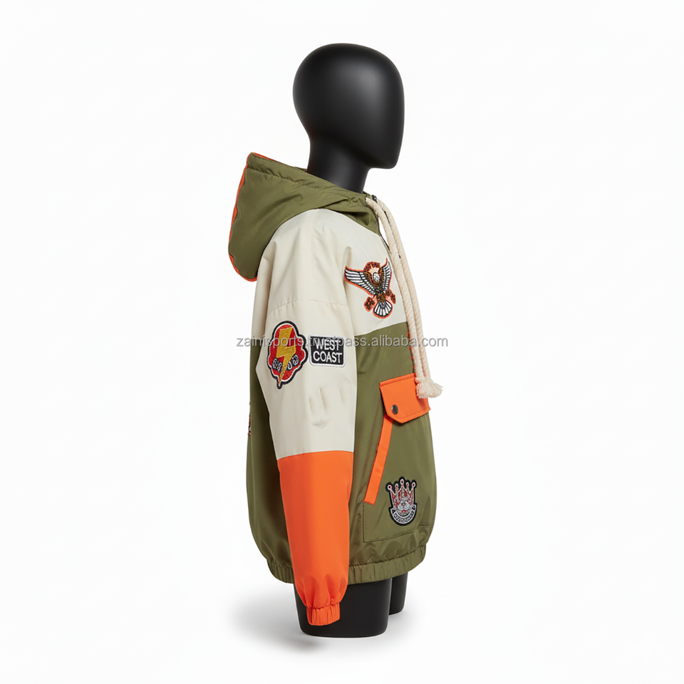 Women Windbreaker Jacket 150 GSM Polyester Fabric Olive Orange Cream Color Block Design Custom Embroidery Logo Jacket For Women