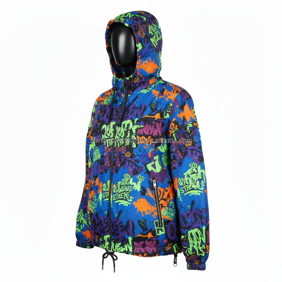 Women Windbreaker Jacket Premium 110GSM Lightweight Polyester Fabric Street Style Colorful Print Custom Logo Jacket For Women