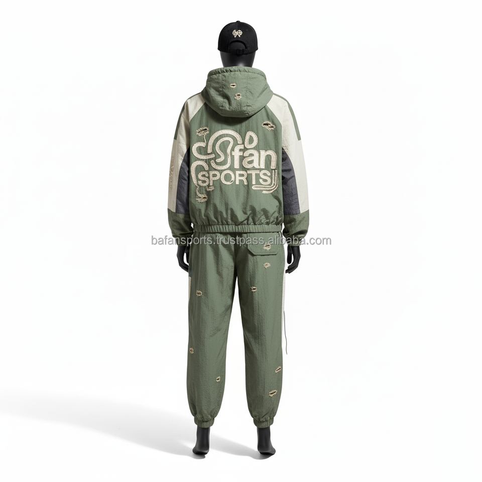 Women Windbreaker Set GSM Nylon Olive Green Beige Panel Design CustomLogo EmbroideryHeat Transfer Printing plus size windbreaker