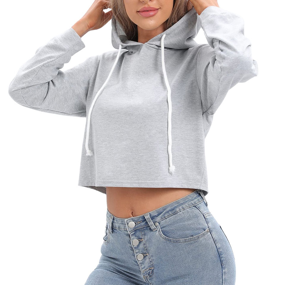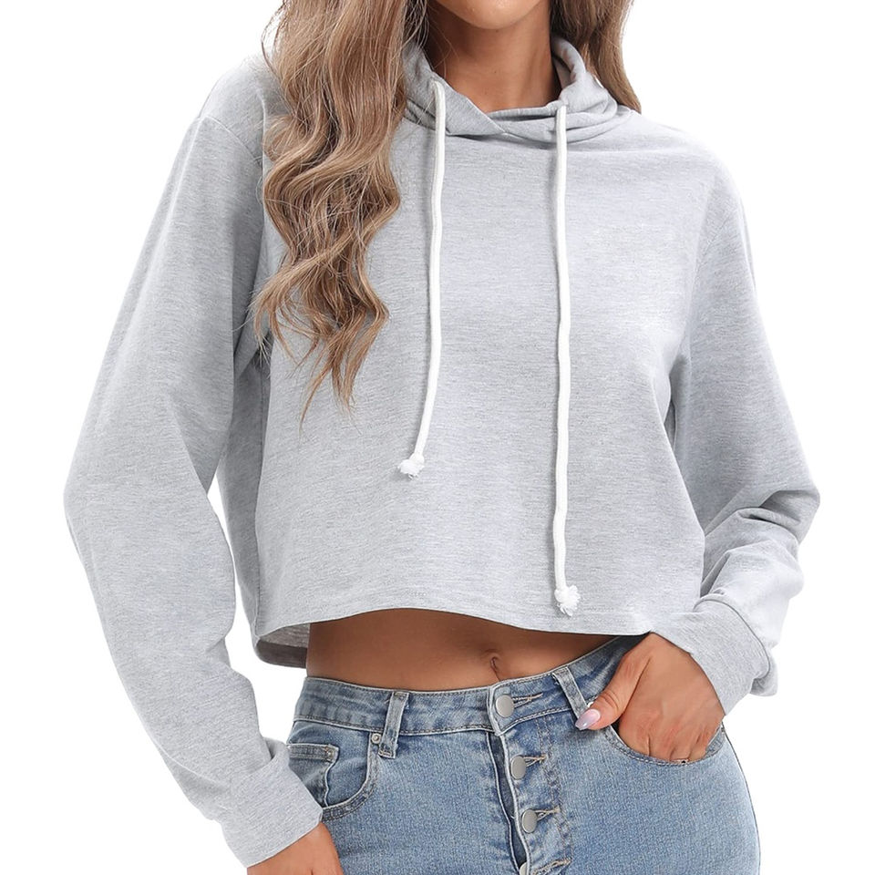 Women Winter Crop Top Hoodies 3D Embroidery Front Trendy Lightweight Pullover Sweatshirt Casual Long Sleeve Soft Comfortable