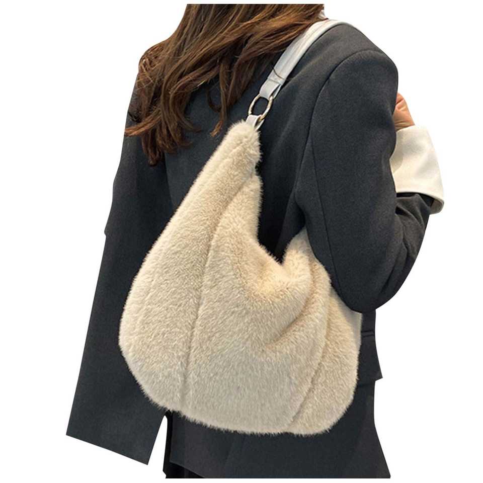 Women Winter Fur Handbag Shoulder Large Capacity Teddy Fluffy Pink Sherpa Tote Bag