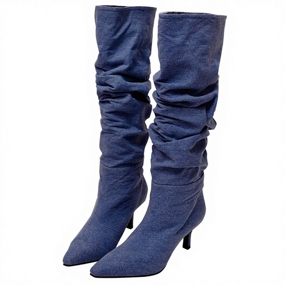 Women Winter Knee High Pointed Toe Boot with Platform Stiletto Heel Padded Anti-Friction Insole and Pu Lining