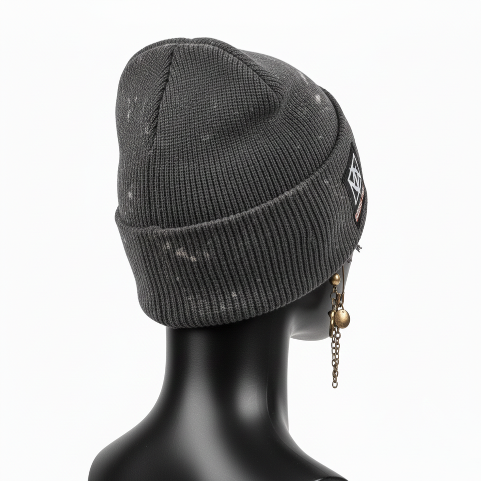 Women Winter Knit Beanie Cap 240GSM Acrylic Rib Fabric Soft Feel Dark Grey Color Cuff Style Embroidered Logo jacquard Beanie Cap