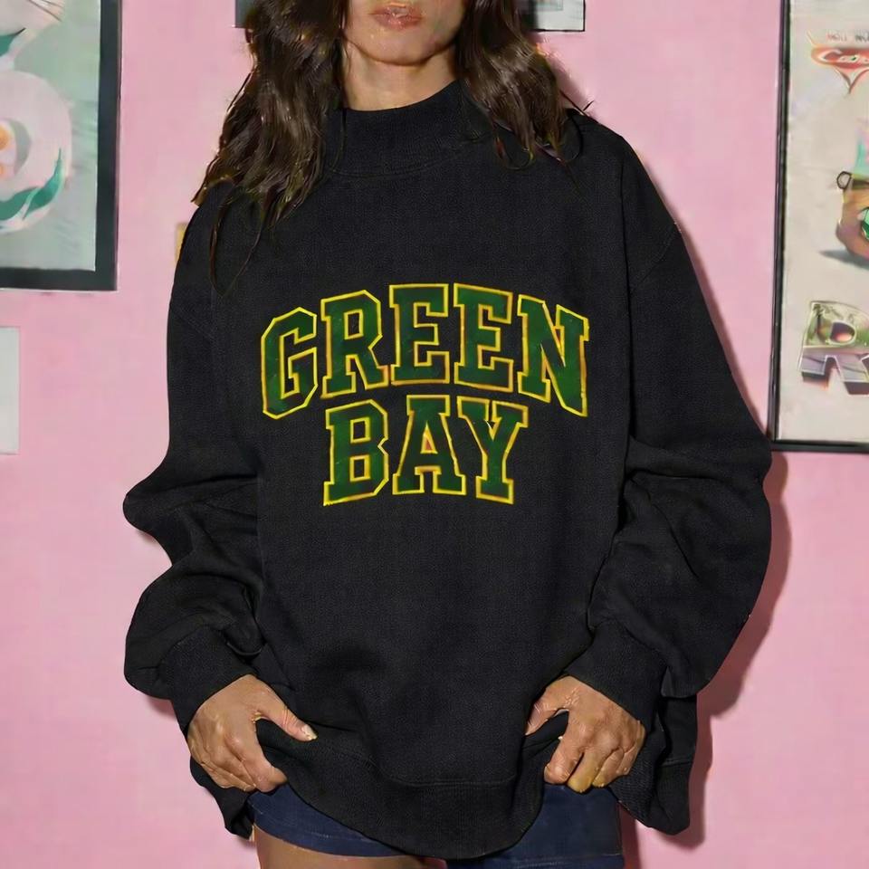 Women Winter Long Printed Oversized Mockneck Loose Fit Casual Top Streetwear Inspired Look for Soft Comfortable Daily Use