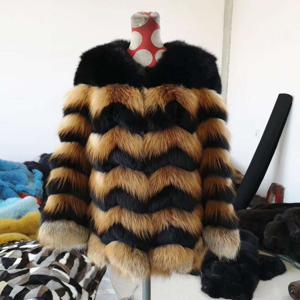 Women Winter Luxury Fur Coat Red Fox Fur Turn Down Collar Winter Jacket