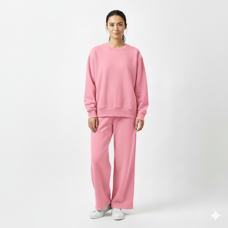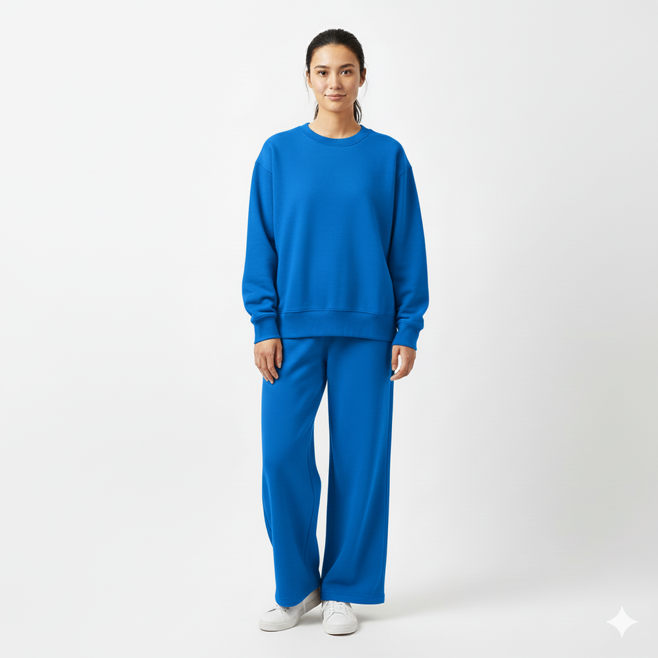 Women Winter Oversized Sweatshirt and Wide Leg Sweatpants Set Soft Two Piece Solid Loungewear Cozy Regular Fit Outfit