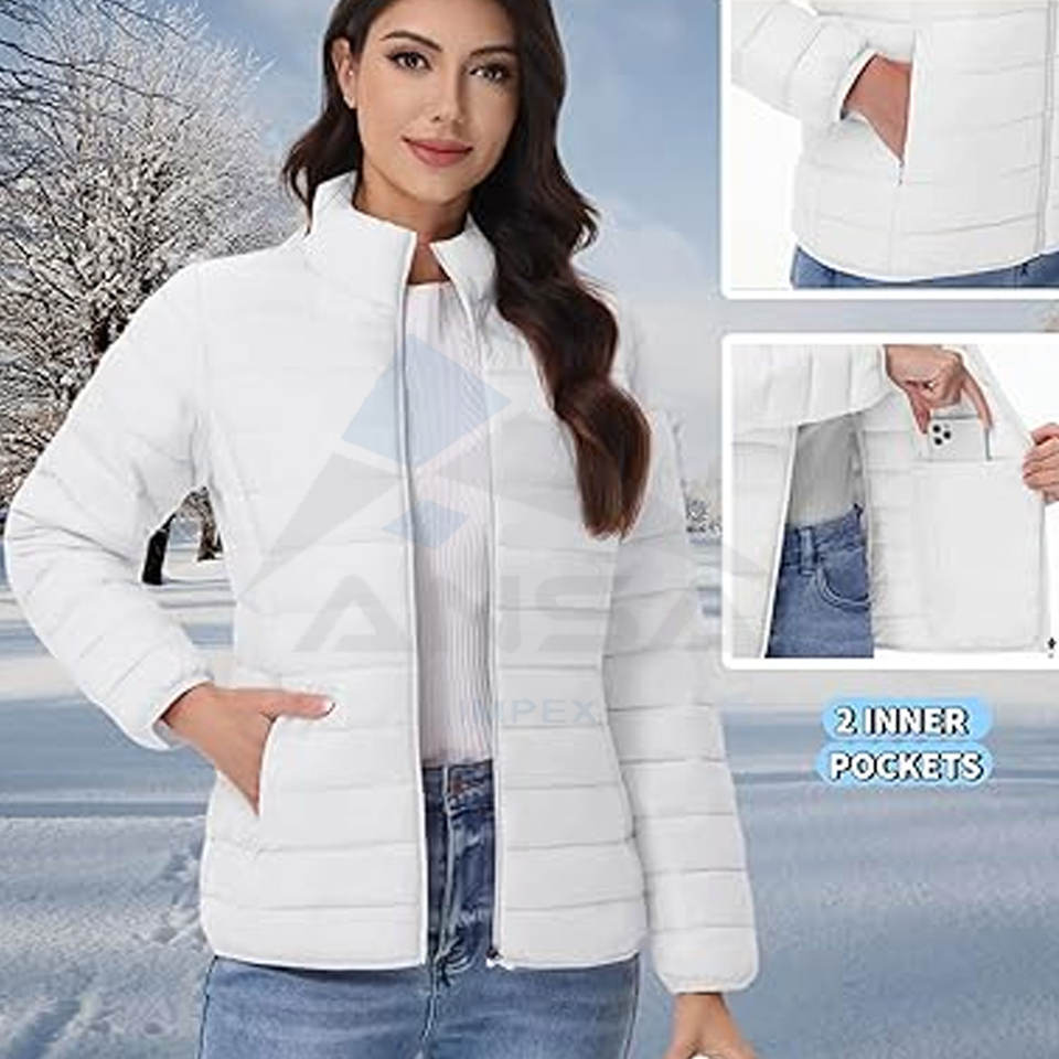 Women Winter Quilted Puffer Jacket Lightweight Warm Coat with Stand Collar Full Zip Outerwear white Color
