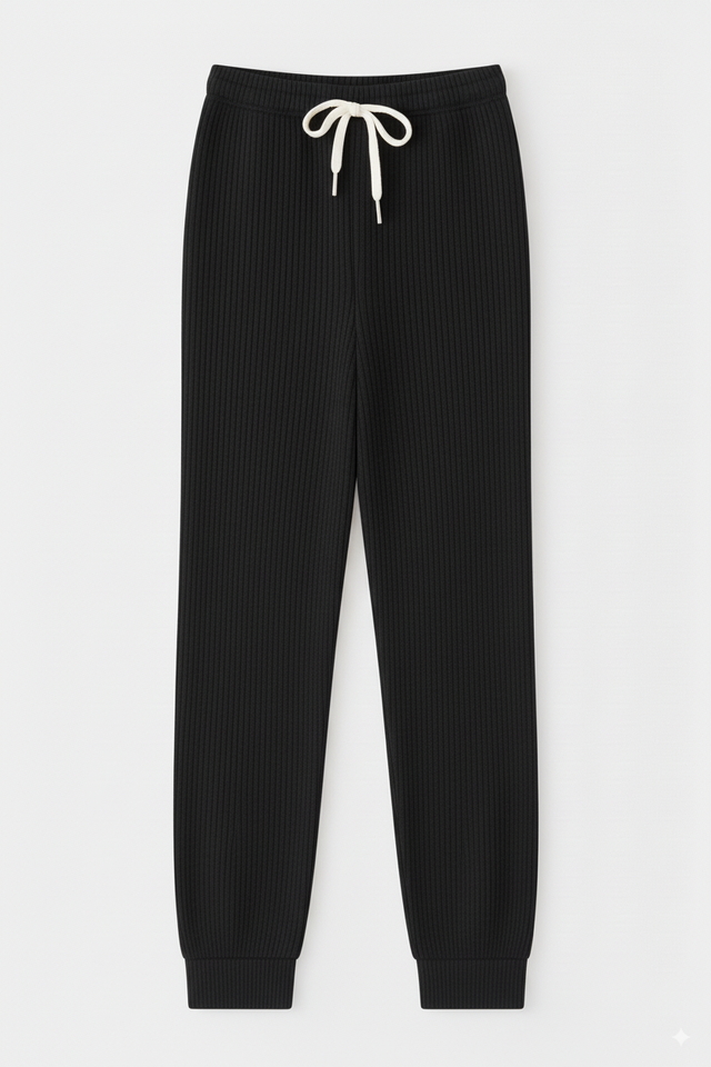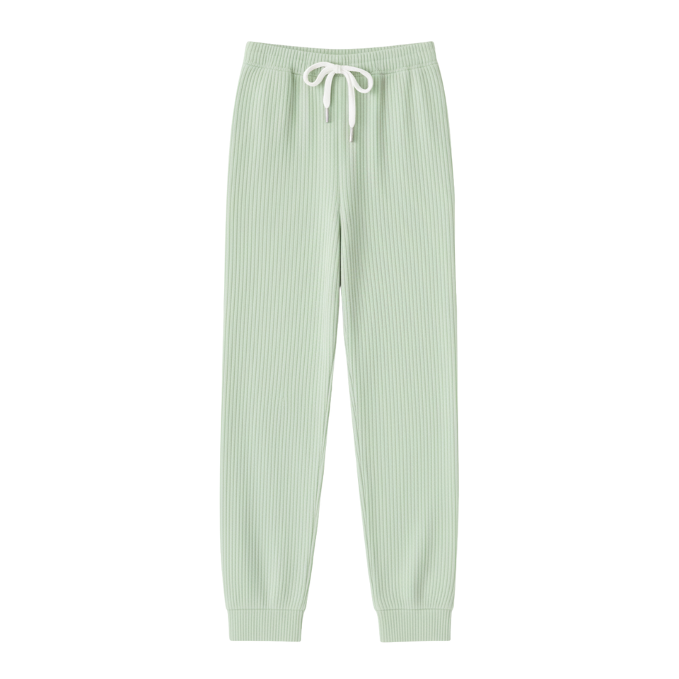 Women Winter Trousers Ribbed Knit Eco-Friendly Breathable Loose Fit Jogger Pants Elastic Waist Drawstring Soft Touch Fabric