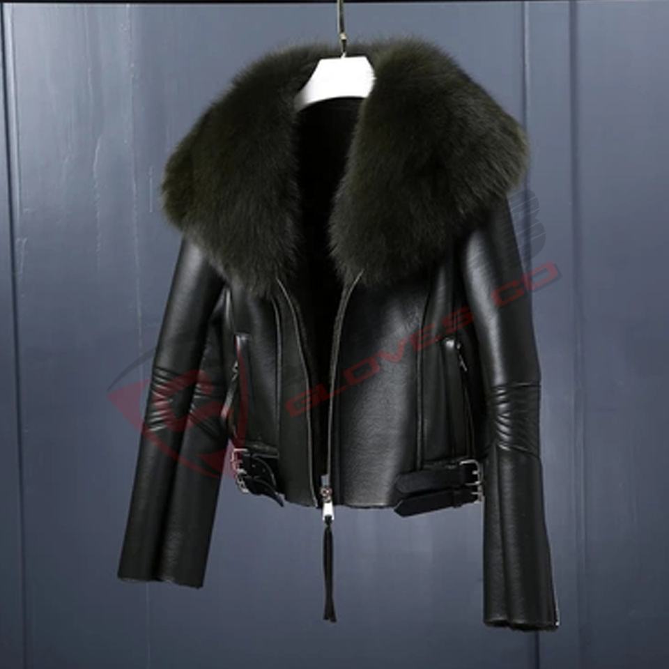 Women Winter Warmed Black Leather Fur-collar Women Breathable Latest Design Lady Casual Fashion Short-Coats