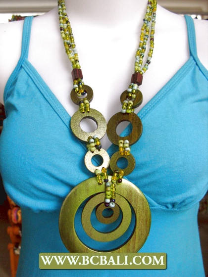 Women Wooden Necklaces with Beads Handmade Tropical Design