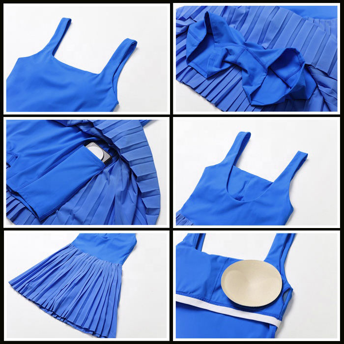 Women Workout Outfit Tennis Dresses Sports Golf Pickleball Exercise Wear Sleeveless Dress With Built-in Bra Shorts Pockets