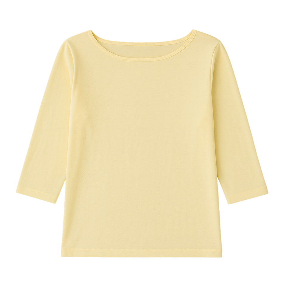 Women Yellow 3/4 Sleeve Boat Neck T Shirt 100% Luxury Organic Cotton Pre Shrunk GOTS Certified Premium Soft Classic Fit Tee