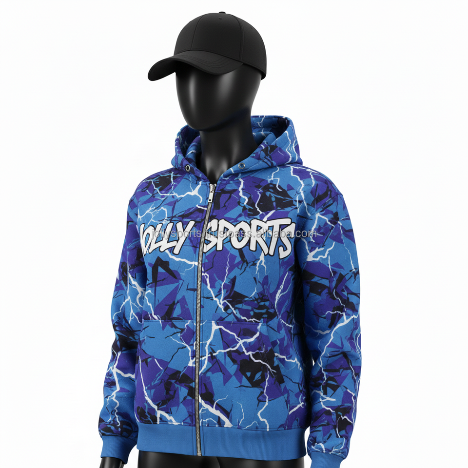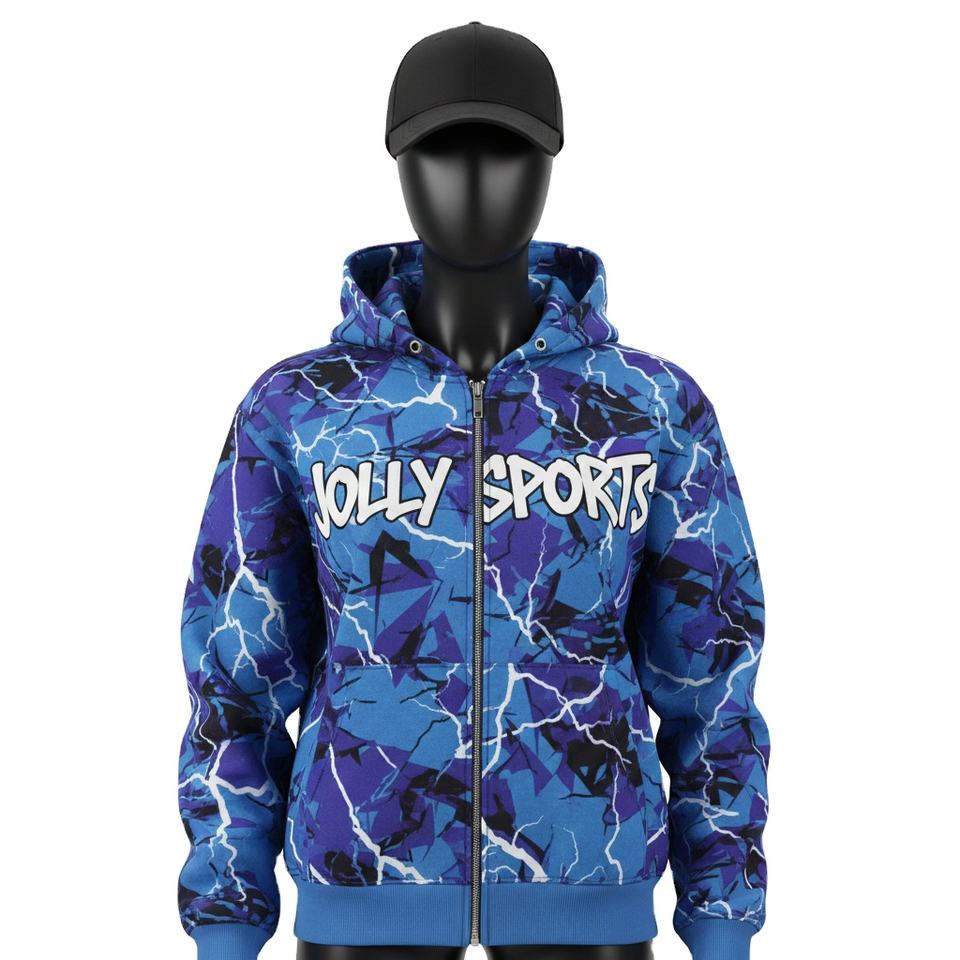 Women Zipper Hoodie Fleece Fabric Blue Purple Lightning Print CustomLogo Sublimation Printing Stylish Wear zipper basics hoodies