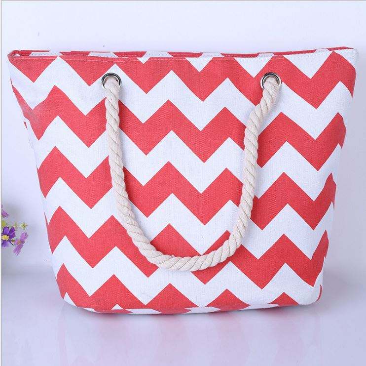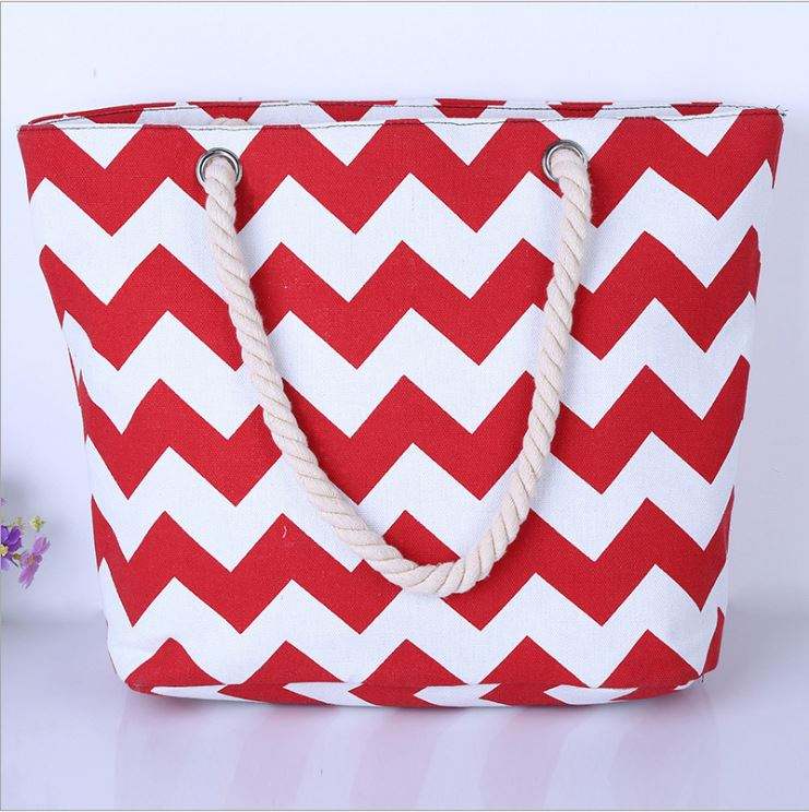 Women and Girls' Fashionable Shopping With Thick Rope Handle New Wave Striped Design Canvas Beach Bag