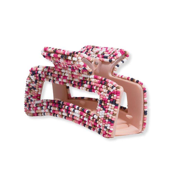 Women and Girls' Handmade Hair Claw Clip with Seed Beaded Embroidery Multiple Rainbow Colors Plastic Material