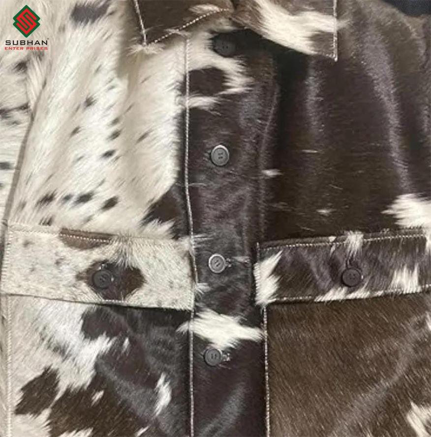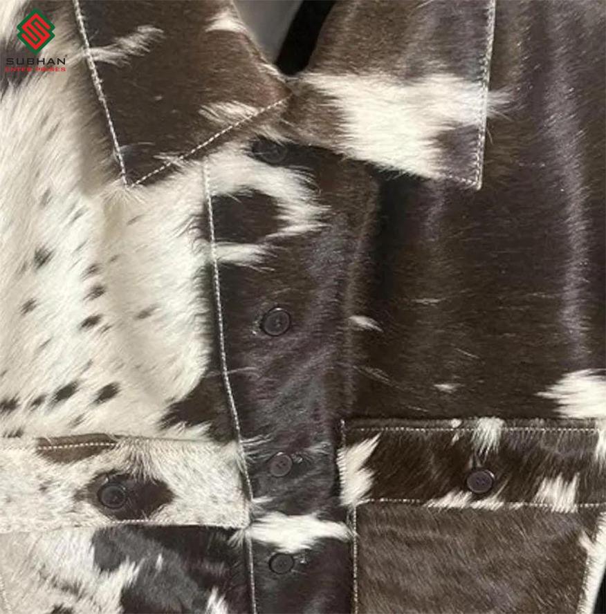 Women and Mens Natural western Genuine Skin Hair Cowhide Leather Jacket Fashion Fur Cowhide western Leather Jacket