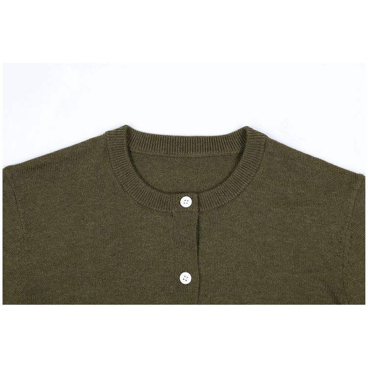 Women's Fashion Autumn Knitted Sweater Cotton-Like Cashmere with Thin Crew Neck Long Sleeves Front Button Ladies' Knitwear