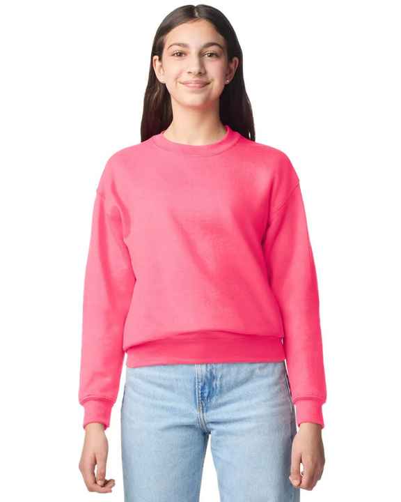 Women crewneck sweatshirt in neon pink fleece pullover plain jumper OEM custom logo printing ladies casual wear soft top
