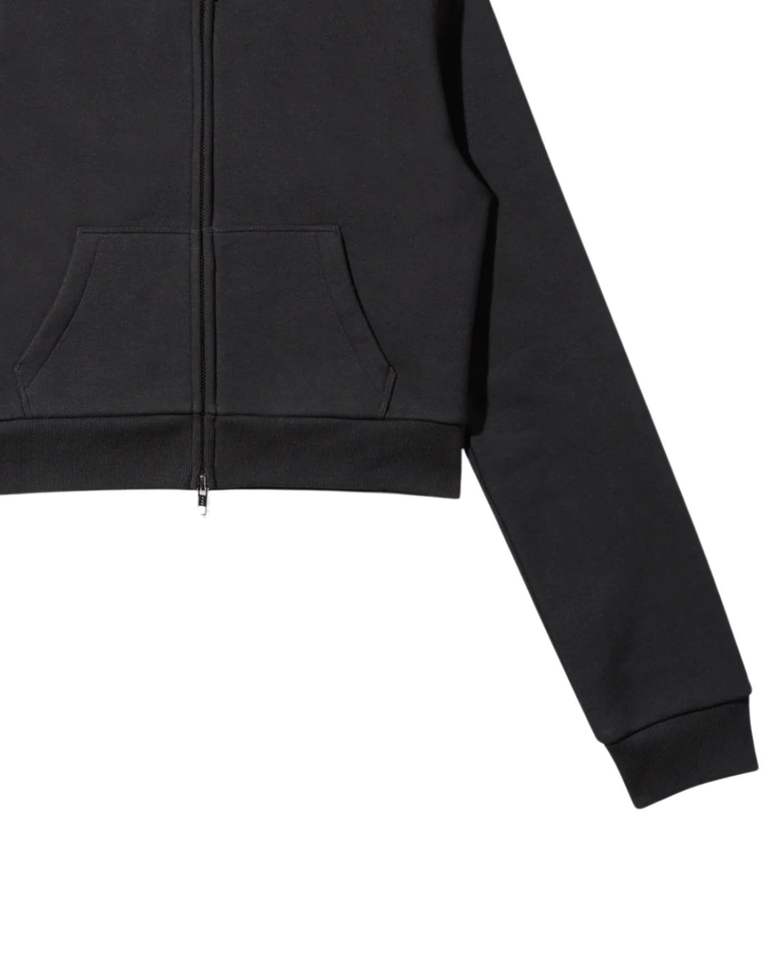 Women cropped zip up hoodie black cotton fleece sweatshirt with long sleeves stylish slim fit casual streetwear OEM
