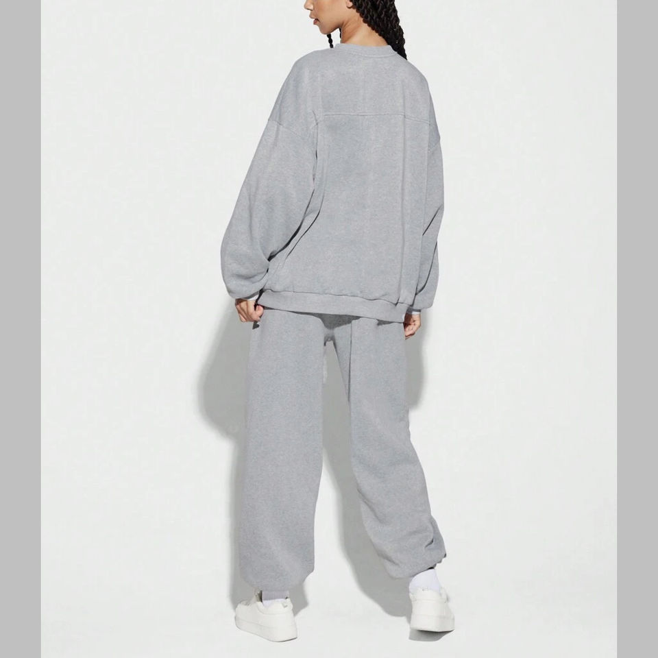 Women custom sweatsuit set oversized hoodie and jogger pants fleece fabric wholesale bulk comfortable casual wear