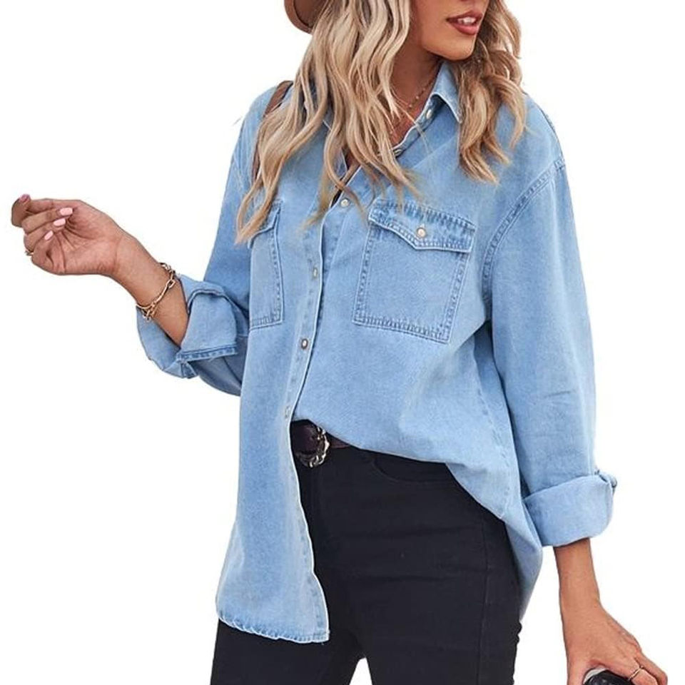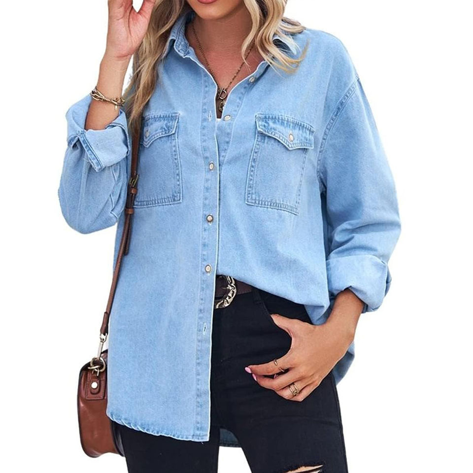 Women denim shirt suitable for office and everyday wear Women denim shirt stylish button front top for comfort denim shirt