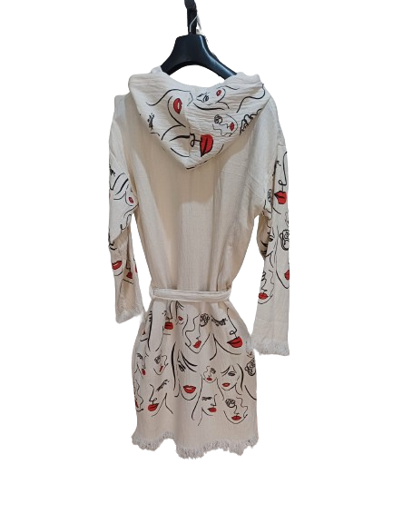 Women lux Printing Turkish Muslin Hooded Bathrobe Colourful Printing Beach Towel Sauna, Bath, Home, Hotel Soft Quick Drying Good