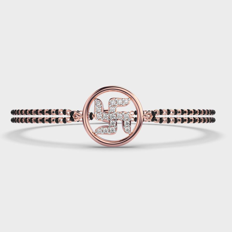 Women's 0.205ct Lab Grown Round Diamond Swastik Mangal Sutra Luxury Bracelet in 14K Yellow / White / Rose Gold IGI Certified