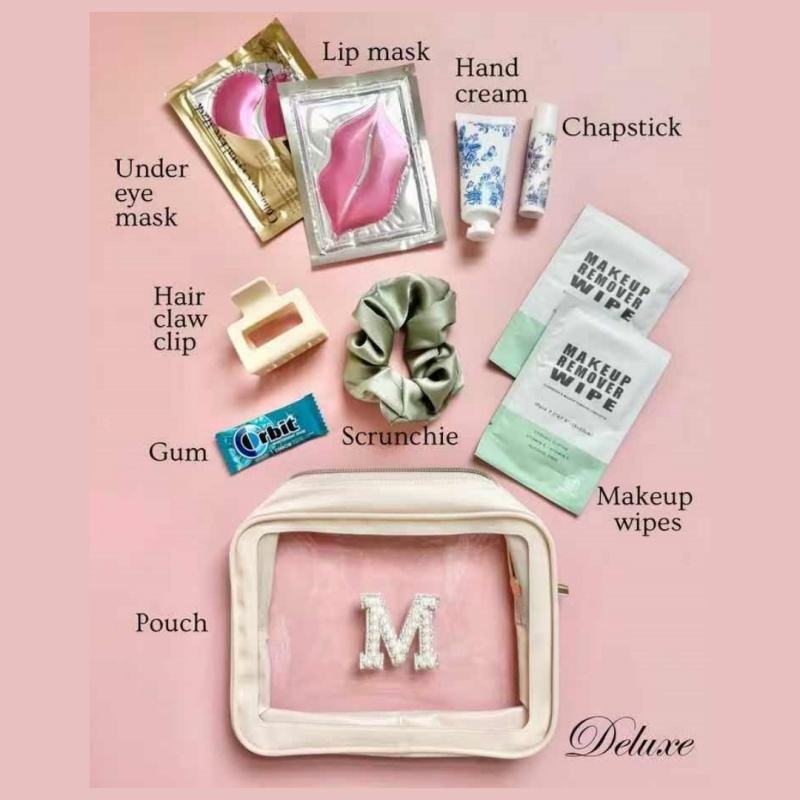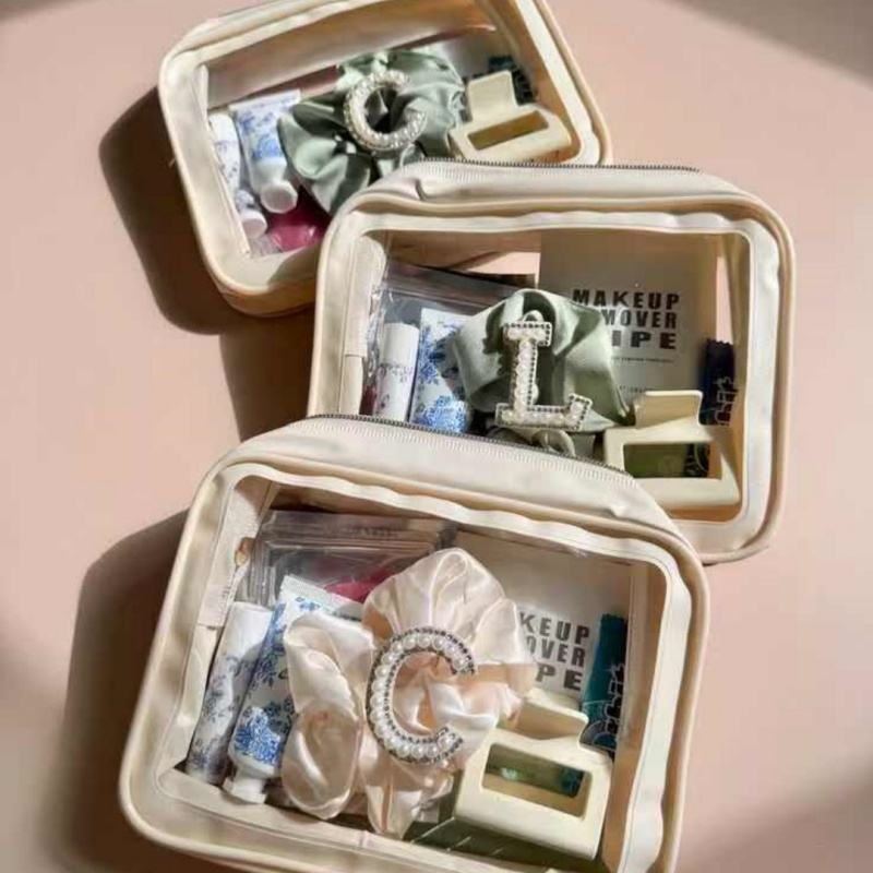 Women's 10-Inch Nylon Mixed PVC Makeup Bag Waterproof Portable Travel Zipper Pouch with Letters Patch Fashion Style