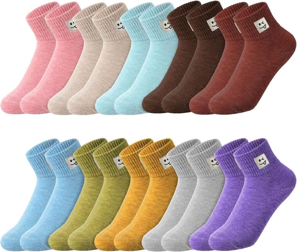 Women's 10-Pair Cotton Ankle-Length Socks Lightweight Low Cut with Elastic Digital Printed for Comfort
