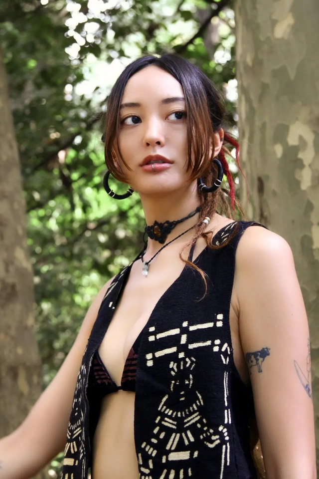 Women's 100% Cotton African Mudcloth Vest Breathable Solid Pattern Tribal Top for Festivals Casual Style