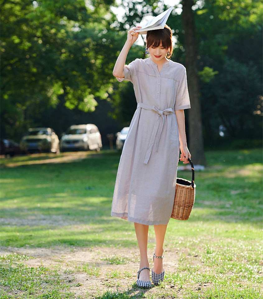 Product Name:Linen Midi Dress Short Sleeve Maxi