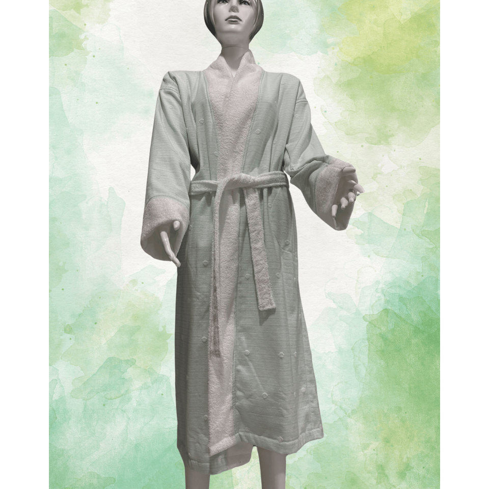 Women's 100% Cotton Woven Pamuklu Sleepwear Green White Bathrobe/Dressing Kimono Gown Quick-Dry Cooling Organic Eco-Friendly