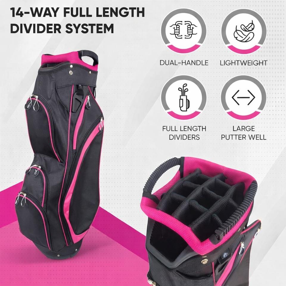 Women’s 14-Way Golf Cart Bag with Full-Length Club Organizer Lightweight Ladies Golf Bag with Pink Trim & Cart Compatibility