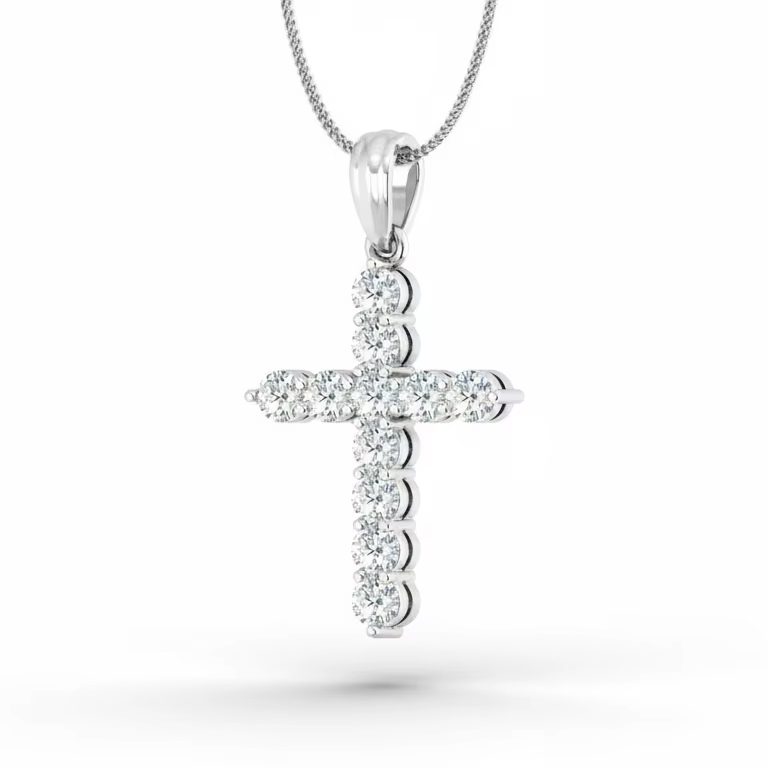 Women's 14K Gold & Natural Classic Round Diamond Cross Pendant