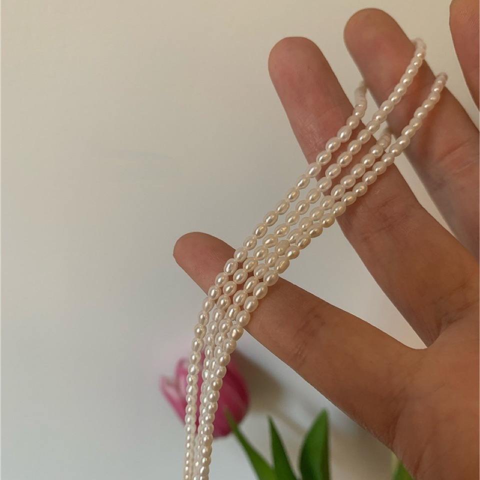 Women's 14K Gold Wrapped Necklace with Natural Rice Beads Simple Temperament Retro Pearl on Collarbone Chain Small Grain Beads